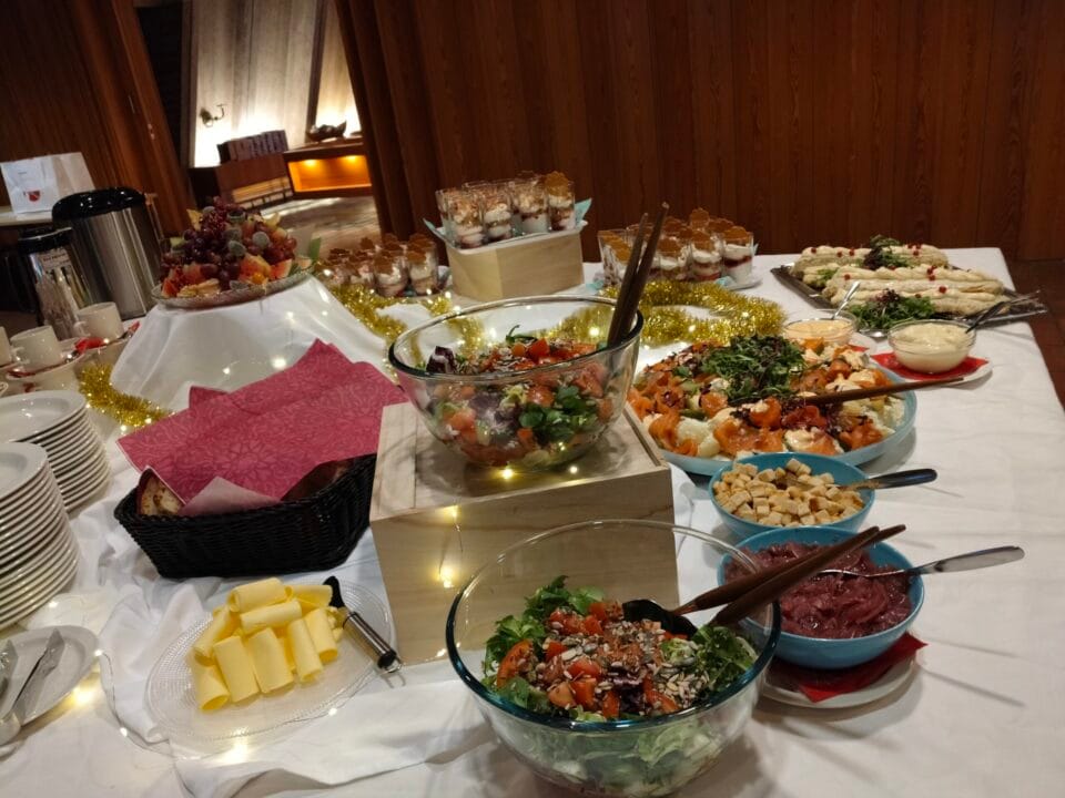 Nautimme Ville Kansannivan (Kahvila Loma Oy) valmistaman maukkaan, hieman erilaisen jouluaterian. Ja pöytä oli katettu koreaksi.